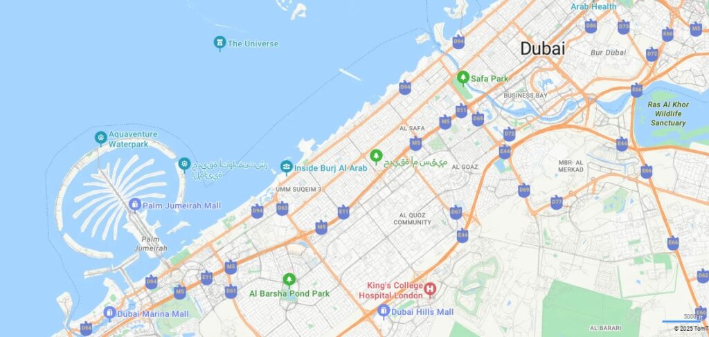 Major sites are Dubai International city, France cluster. Al Karama, Burdubai, Dubai Internet city, Dubai Media City